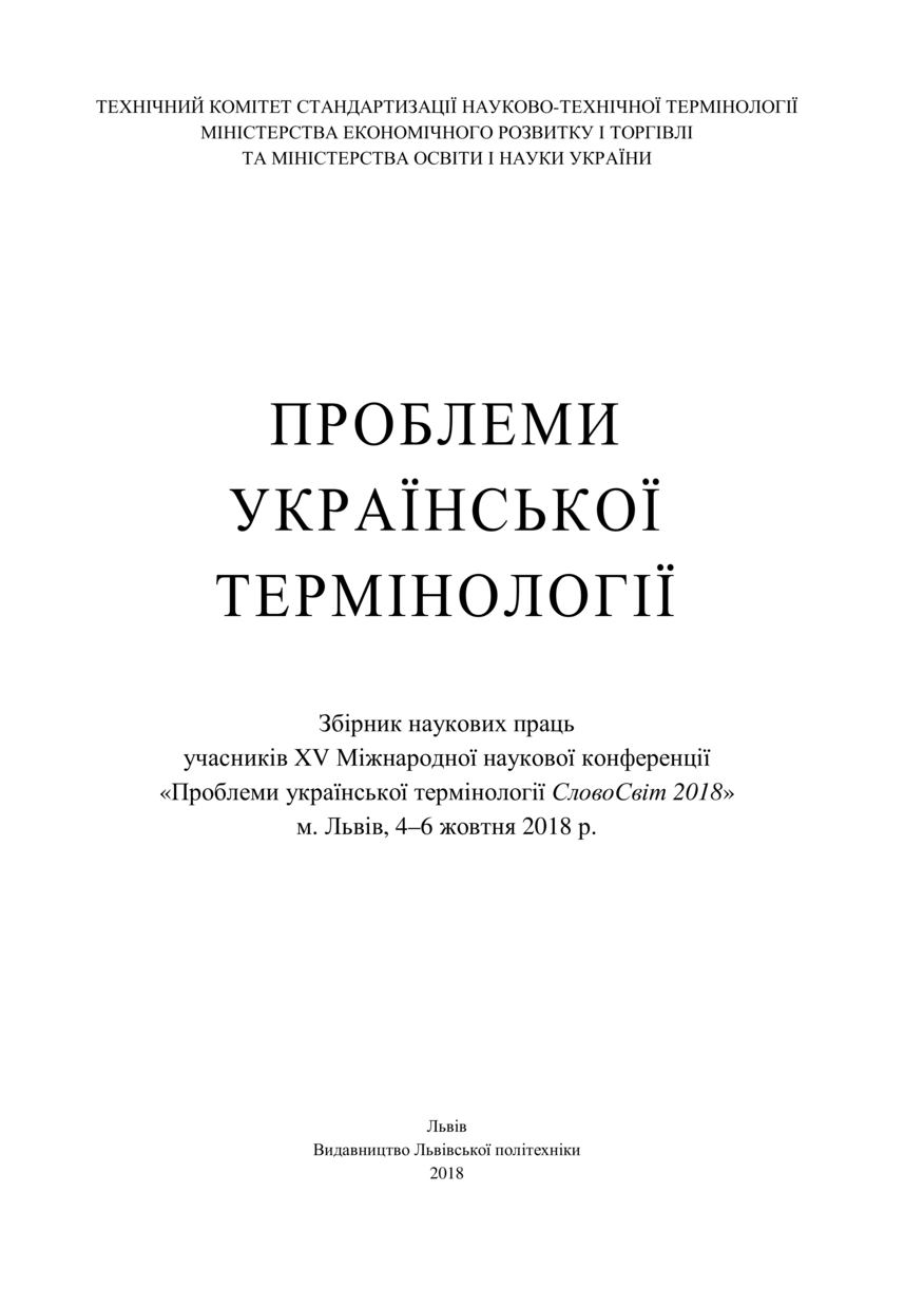 | dc.relation.ispartof | Проблеми української термінології : збірник наукових праць учасників ХV Міжнародної наукової конференції "СловоСвіт 2018", 2018 | |