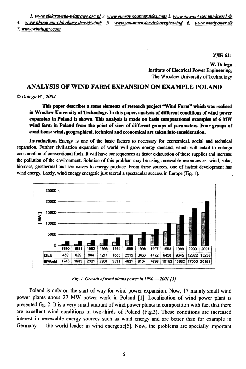 Dolega W. Analysis of wind farm expansion on example Poland / W. Dolega // Вісник Національного університету “Львівська політехніка”. — Львів : Видавництво Національного університету “Львівська політехніка”, 2004. — № 506 : Теплоенергетика. Інженерія довкілля. Автоматизація. — С. 6–14.