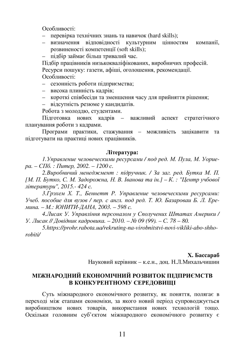 Бассараб Х. Міжнародний економічний розвиток підприємств в конкурентному середовищі / Х. Бассараб, Н. Л. Михальчишин // 76-та Студентська науково-технічна конференція. Секція "Публічне управління та адміністрування" : збірник тез доповідей, 7 листопада 2018 року, Львів. — Львів : Видавництво Львівської політехніки, 2018. — С. 11–13.