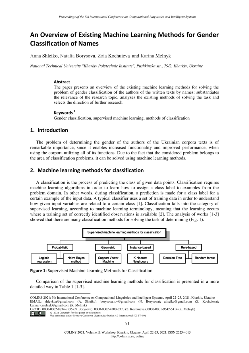 | dc.identifier.citationen | An Overview of Existing Machine Learning Methods for Gender Classification of Names / Anna Shleiko, Natalia Borysova, Zoia Kochuieva, Karina Melnyk // Computational linguistics and intelligent systems, 22-23 April 2021, Kharkiv. — Lviv ; Kharkiv, 2021. — Vol Vol. II : Proceedings of the 5th International conference, COLINS 2021, Workshop, Kharkiv, Ukraine, April 22-23. — P. 91–92. | |