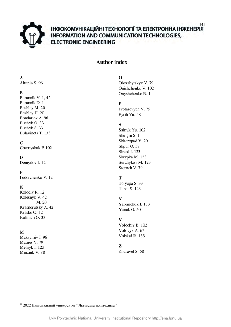 Зміст // Інфокомунікаційні технології та електронна інженерія. — Львів : Видавництво Львівської політехніки, 2022. — Том 2. — № 2. — С. 141–144.