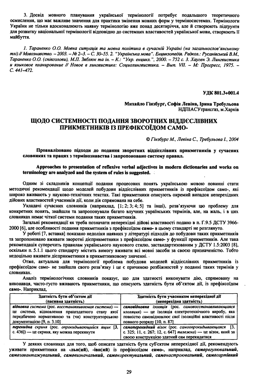 Пнзбург М. Щодо системності подання зворотних віддієслівних прикметників із префіксоїдом само- / М. Пнзбург, С. Левіна, І. Требульова // Вісник Національного університету “Львівська політехніка”. — Львів : Видавництво Національного університету “Львівська політехніка”, 2004. — № 503 : Проблеми української термінології. — С. 29–33.