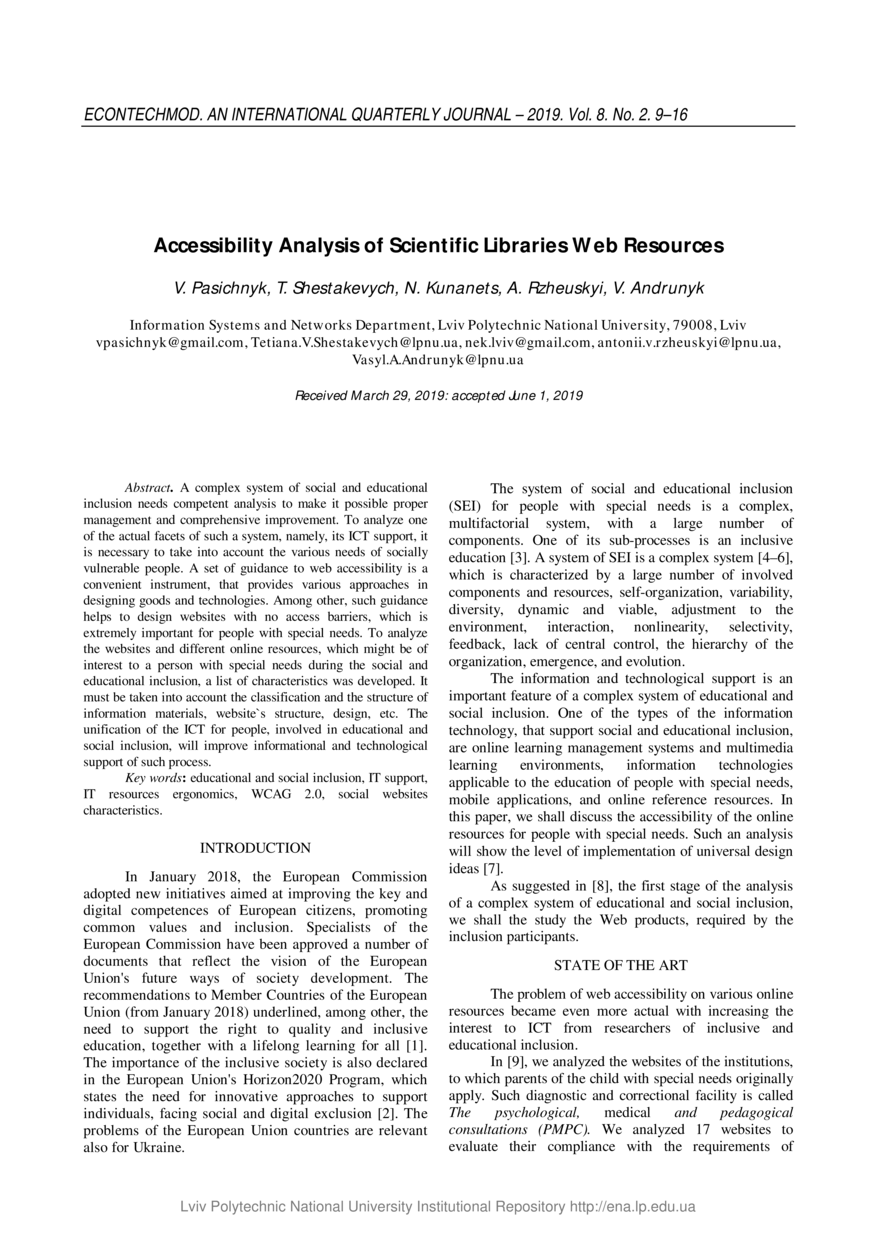 | dc.title | Accessibility analysis of scientific libraries web resources | |