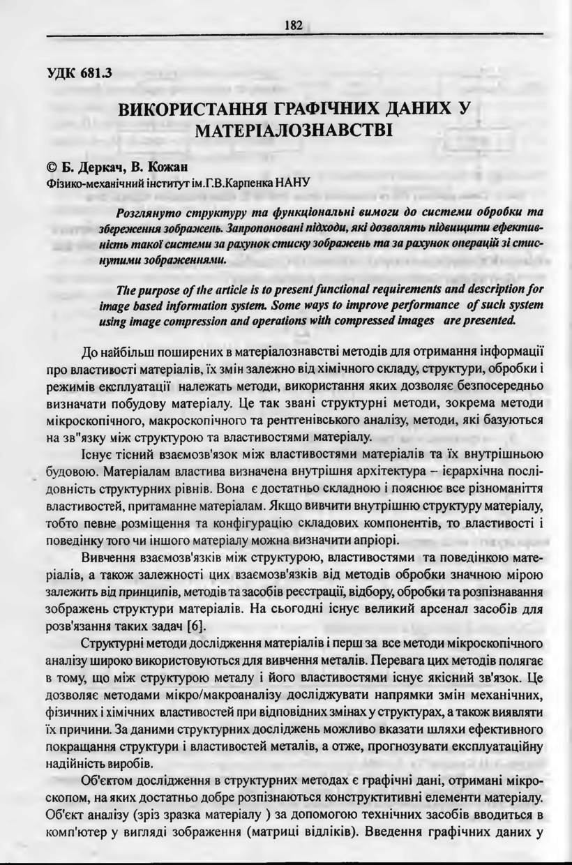 Деркач Б. Використання графічних даних у матеріалознавстві / Б. Деркач, В. Кожан // Вісник Національного університету “Львівська політехніка”. — Львів : Видавництво Національного університету “Львівська політехніка”, 2001. — № 433 : Комп’ютерна інженерія та інформаційні технології. — С. 182–187.