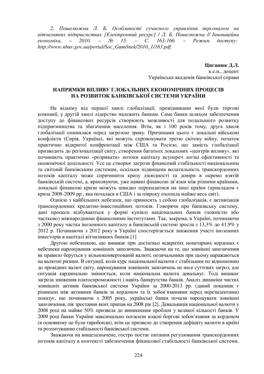 Напрямки впливу глобальних економічних процесів на розвиток банківської системи України