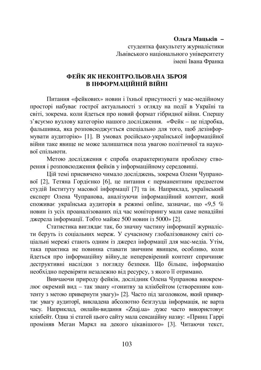 | dc.relation.referencesen | 2. Chupranova O. Kozhna piata novyna v interneti – "pid pytanniam". Shcho chytaiemo v onlain-media? [Electronic resource] – Access mode: https://detector.media/monitoring/article/141408/2018-10-01-kozhnapyata-novina-v-interneti-pid-pitannyam-shcho-chitaemo-v-onlain-media/ | |