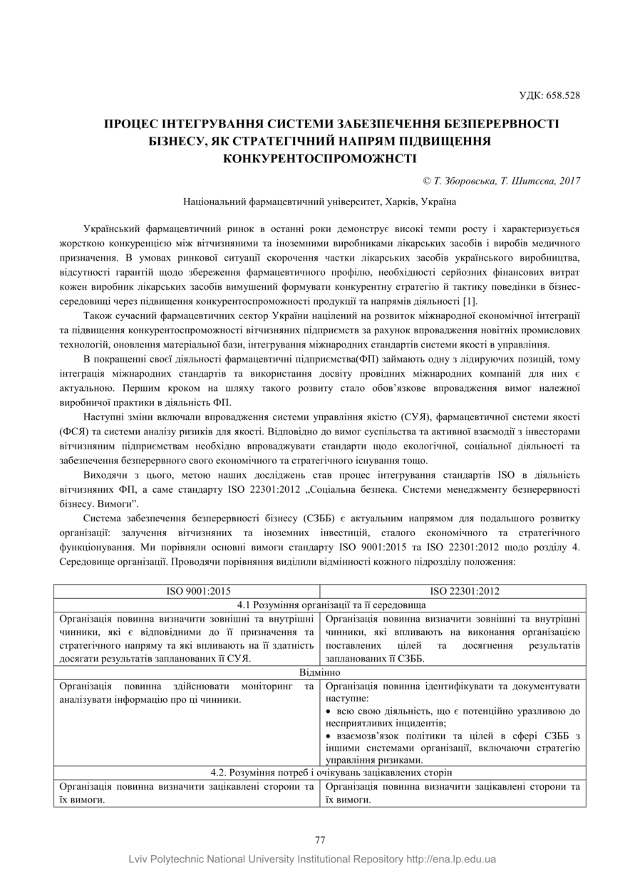 | dc.relation.referencesen | 3. Sotsialna bezpeka. Systemy menedzhmentu bezperervnosti biznesu. Vymohy (ISO 22301:2012, IDT), ISO, 2012, 28 p. | |