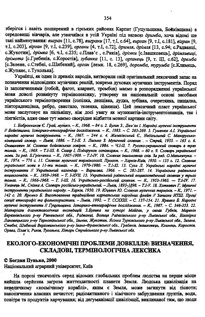 Пунько Б. Еколого-економічні проблеми довкілля: визначення, складові, термінологічна лексика / Б. Пунько // Вісник Державного університету “Львівська політехніка”. — Львів : Видавництво Державного університету “Львівська політехніка”, 2000. — № 402 : Проблеми української термінології. — С. 354–360. — (Термінологія гуманітарних знань).