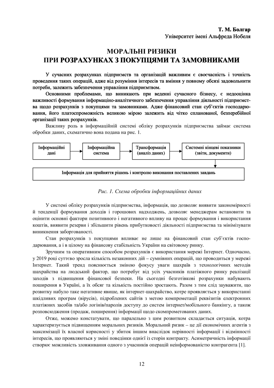Болгар Т. М. Моральні ризики при розрахунках з покупцями та замовниками / Т. М. Болгар // Обліково-аналітичне забезпечення системи менеджменту підприємства : матеріали IV Міжнародної науково-практичної конференції, 24-26 жовтня 2019 року, Львів. — Львів : Видавництво Львівської політехніки, 2019. — С. 12–13.