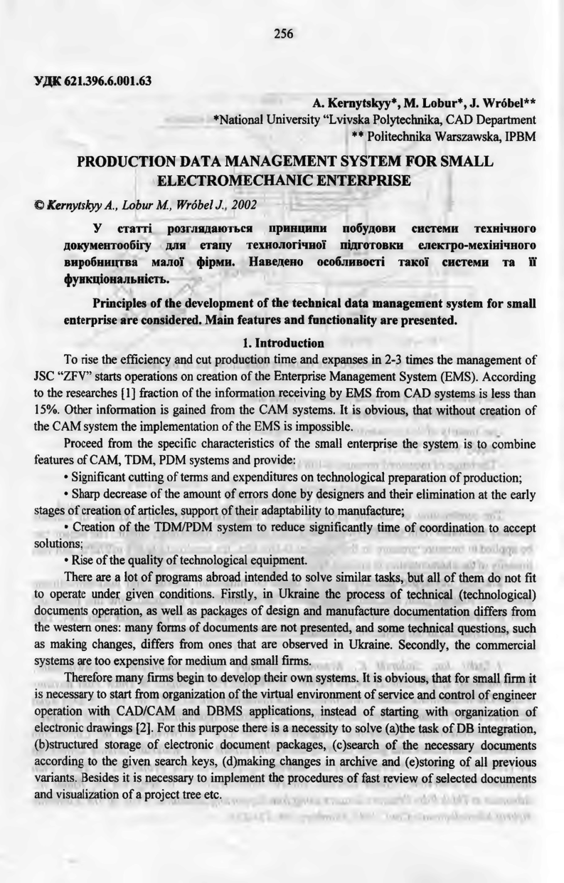 Kernytskyy A. Production data management system for small electromechanic enterprise / A. Kernytskyy, M. Lobur, J. Wrobel // Вісник Національного університету “Львівська політехніка”. — Львів : Видавництво Національного університету “Львівська політехніка”, 2002. — № 443 : Радіоелектроніка та телекомунікації. — С. 256–263.
