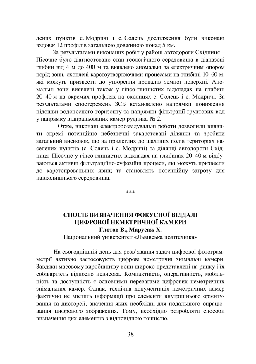 Глотов В. Спосіб визначення фокусної віддалі цифрової неметричної камери / В. Глотов, Х. Марусаж // GEOFORUM’2019 : тези доповідей 24 Міжнародної науково-технічної конференції, 10–12 квітня 2019 року, Львів. — Львів : Видавництво Львівської політехніки, 2019. — С. 38–39.
