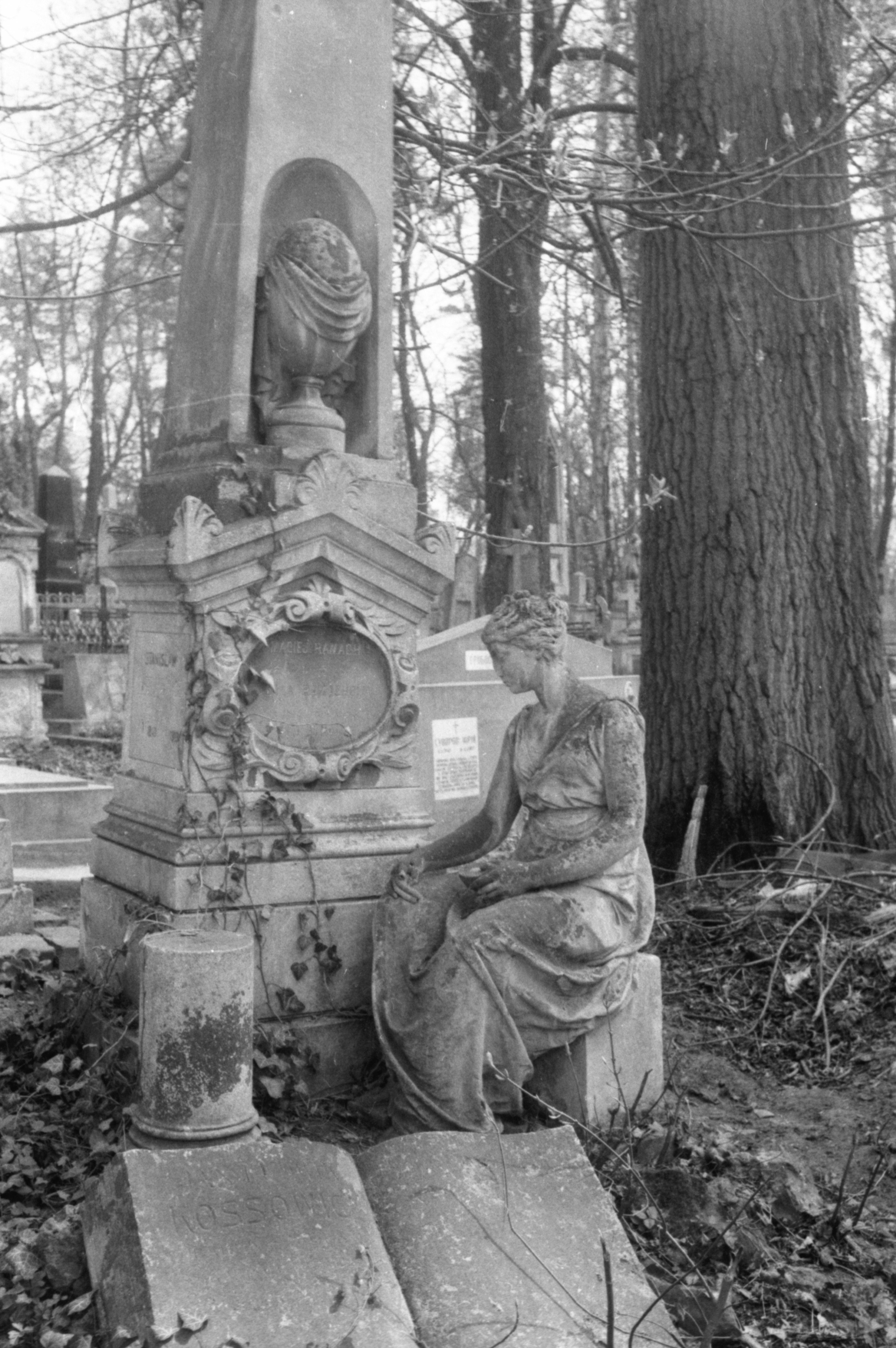 | dc.description.abstract | Могила родини Рамахів. Поховані: Станіслав Пйонткевич (1849-1919) — директор гімназії. Аделя Рамах (1813-1883). Матвій Рамах (1813-1884). Надгробок — високий обеліск з інскрипцією про покійних, в ніші розміщена урна покрита флером. Біля обеліска сидить скульптура жінки, лежить відкрита книга з інскрипцією. Автор памятника — Юліан Марковський. Поле №11. | |