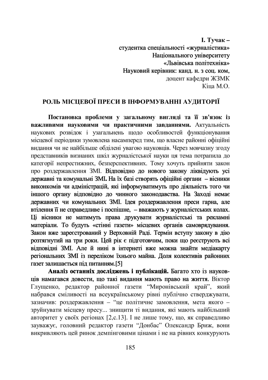 Роль місцевої преси в інформуванні аудиторії