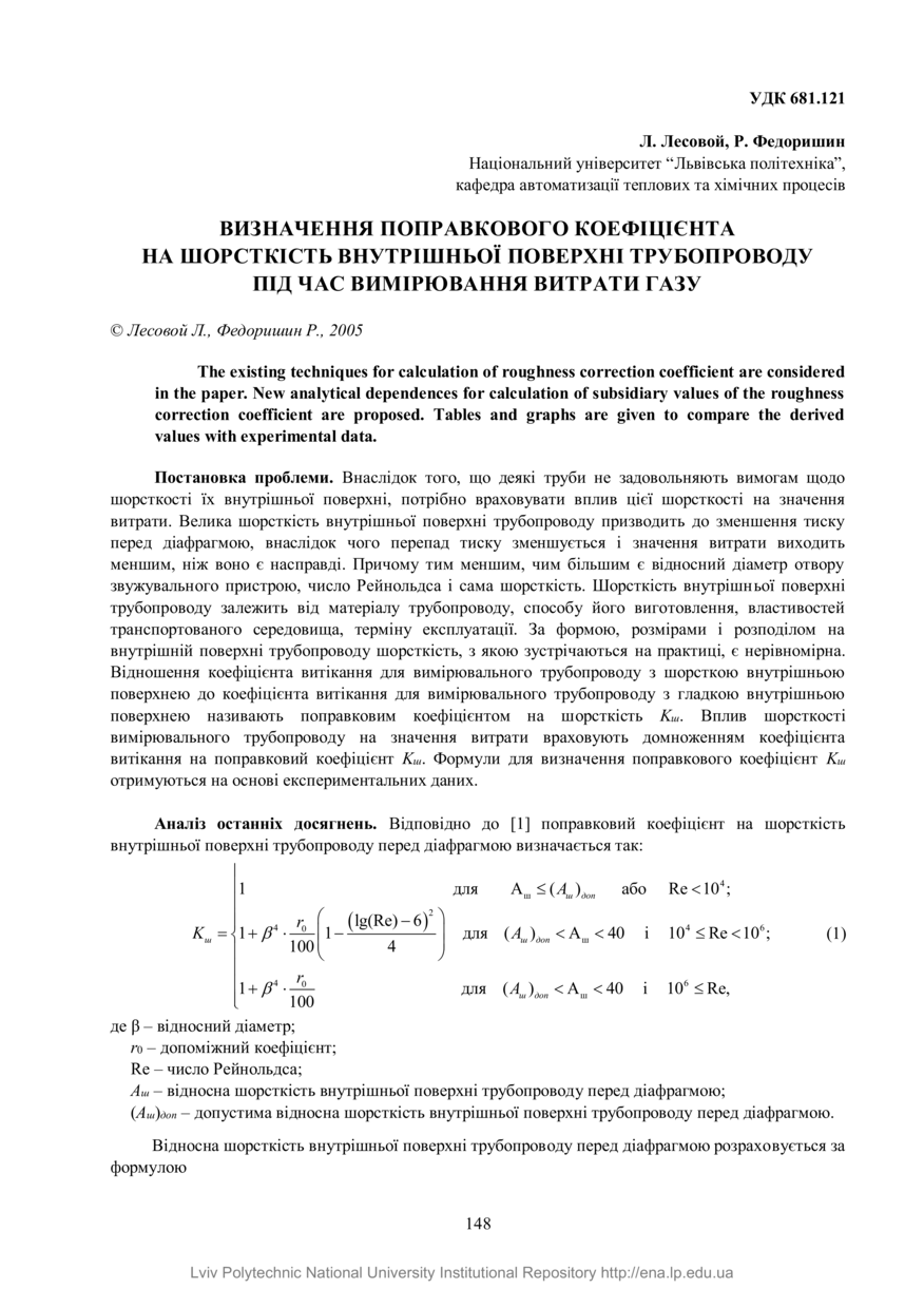 | dc.relation.references | 5. Пістун Є.П., Лесовий Л.В., Химко О.М. Визначення поправкового множника на шорсткість трубопроводу під час вимірювання витрати газу / Нафтова і газова промисловість. – 2000. – №5. – С. – 41–44. | |