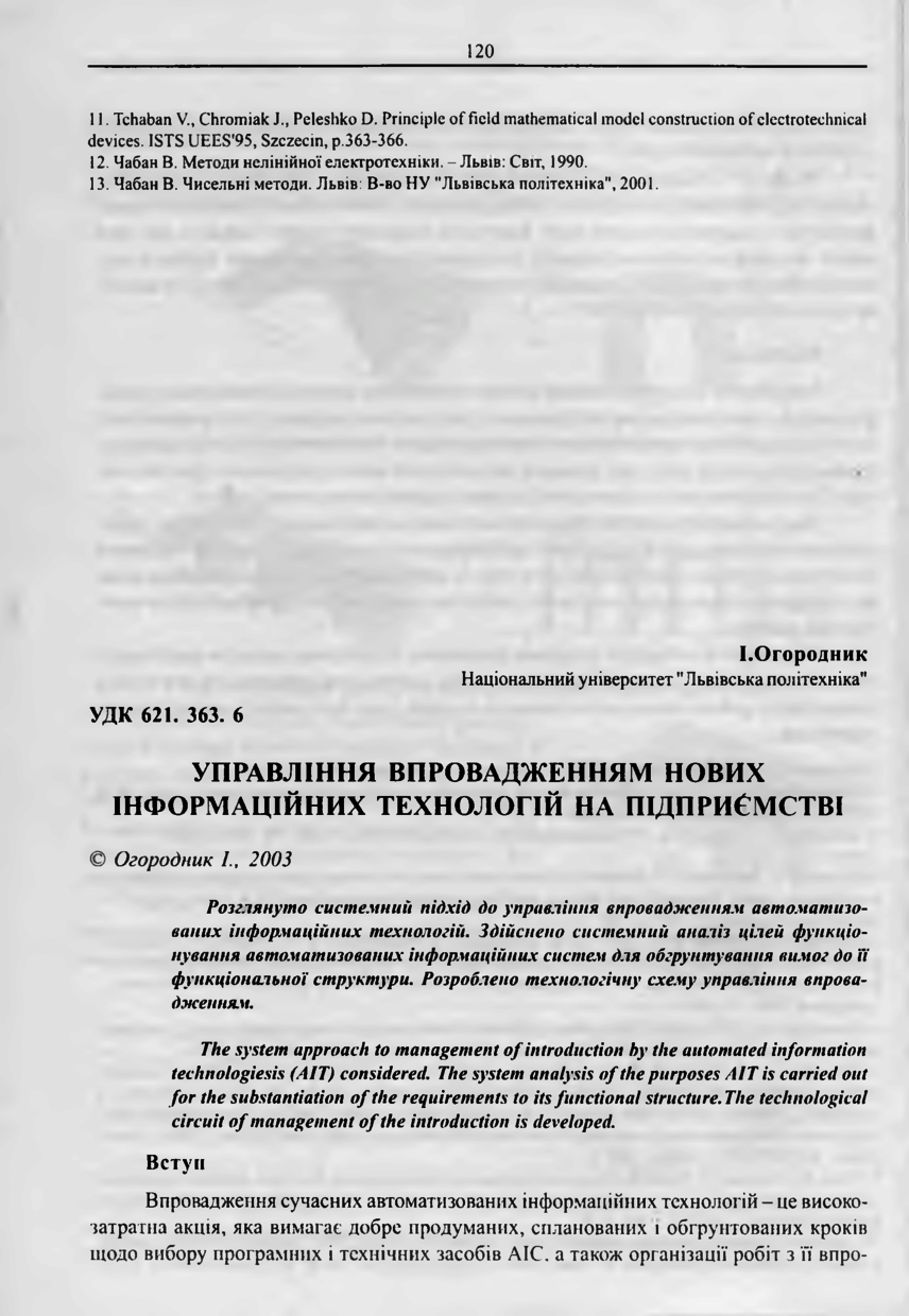 | dc.identifier.citationen | Ohorodnyk I. Upravlinnia vprovadzhenniam novykh informatsiinykh tekhnolohii na pidpryiemstvi / I. Ohorodnyk // Visnyk Natsionalnoho universytetu "Lvivska politekhnika". — Lviv : Vydavnytstvo Natsionalnoho universytetu "Lvivska politekhnika", 2003. — No 496 : Kompiuterna inzheneriia ta informatsiini tekhnolohii. — P. 120–126. — (Modeliuvannia protsesiv i system). | |