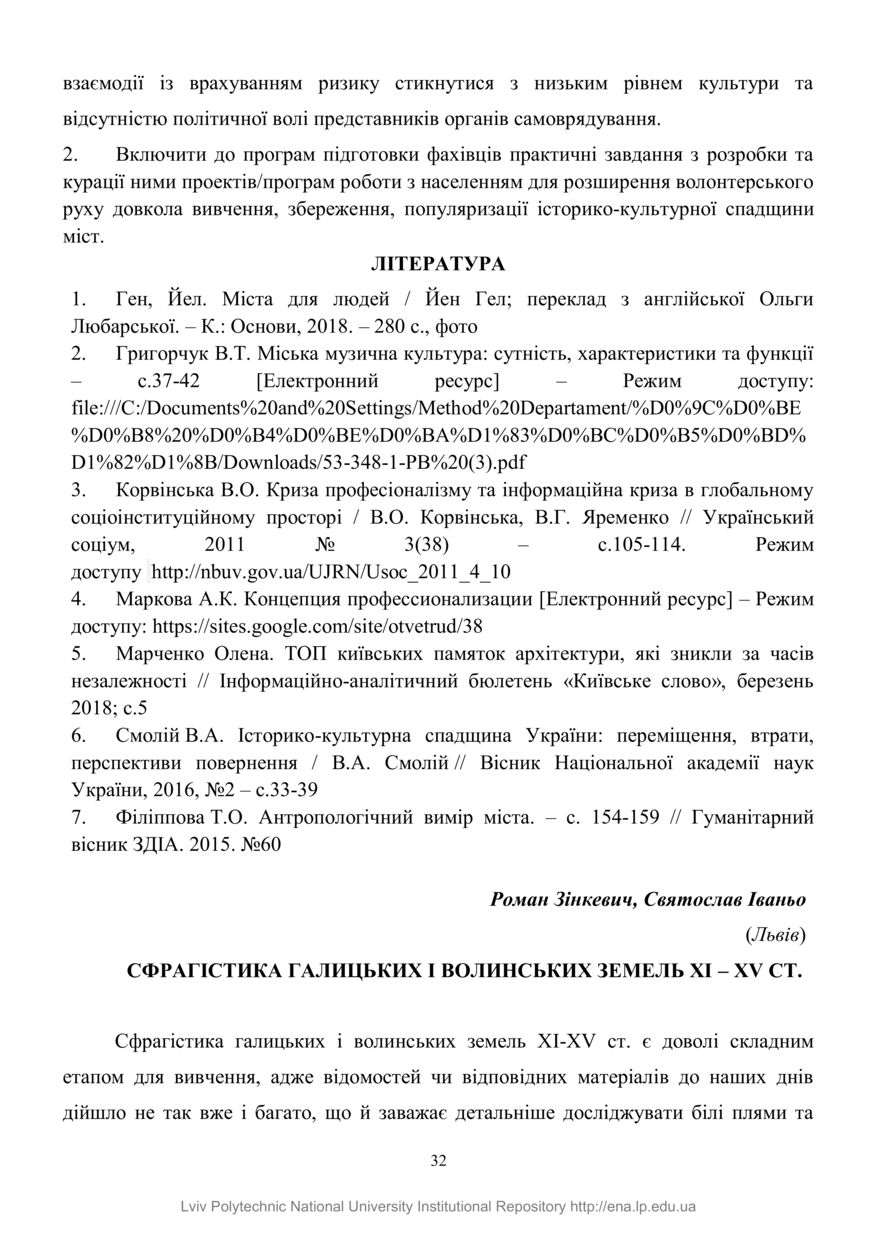 Зінкевич Р. Сфрагістика галицьких і волинських земель ХІ – ХV ст. / Роман Зінкевич, Святослав Іваньо // Історико-культурна спадщина: європейський вимір : тези Всеукраїнської науково-практичної конференції, 1 червня, 2018 року, Львів. — Львів : Інтерпрінт, 2018. — С. 32–37.
