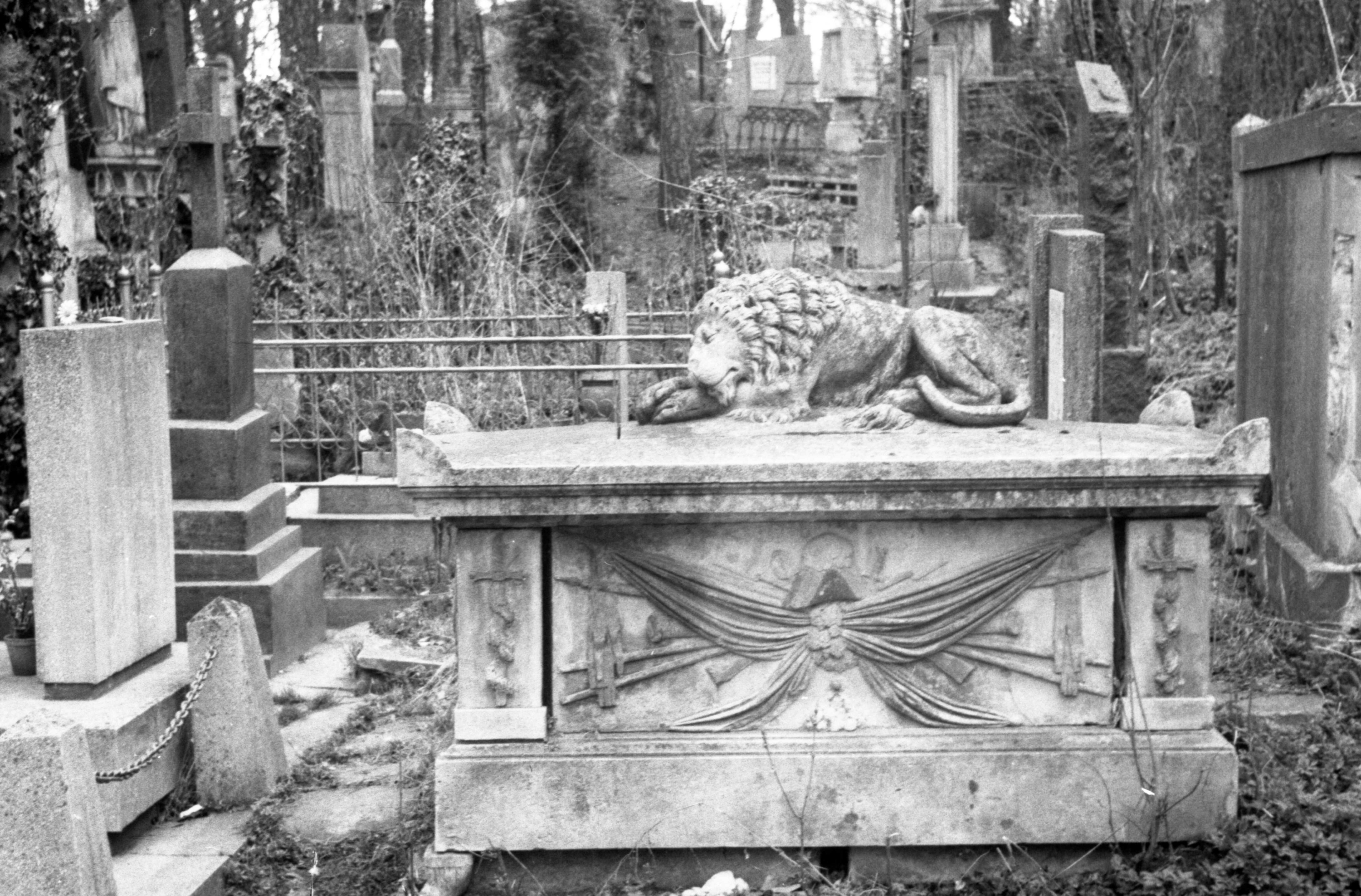 | dc.description.abstract | Могила Антонія-Амор Тарновського — шамбеляна (управителя) австрійського двору, генерал-майора цісарсько-королівського війська. Надгробок — саркофаг з барельєфами родового герба та військовими емблемами. На віку саркофага — скульптура сплячого лева. Позаду могили видно інші поховання. Автор скульптури — Пауль Ойтелє. Поле №10. | |