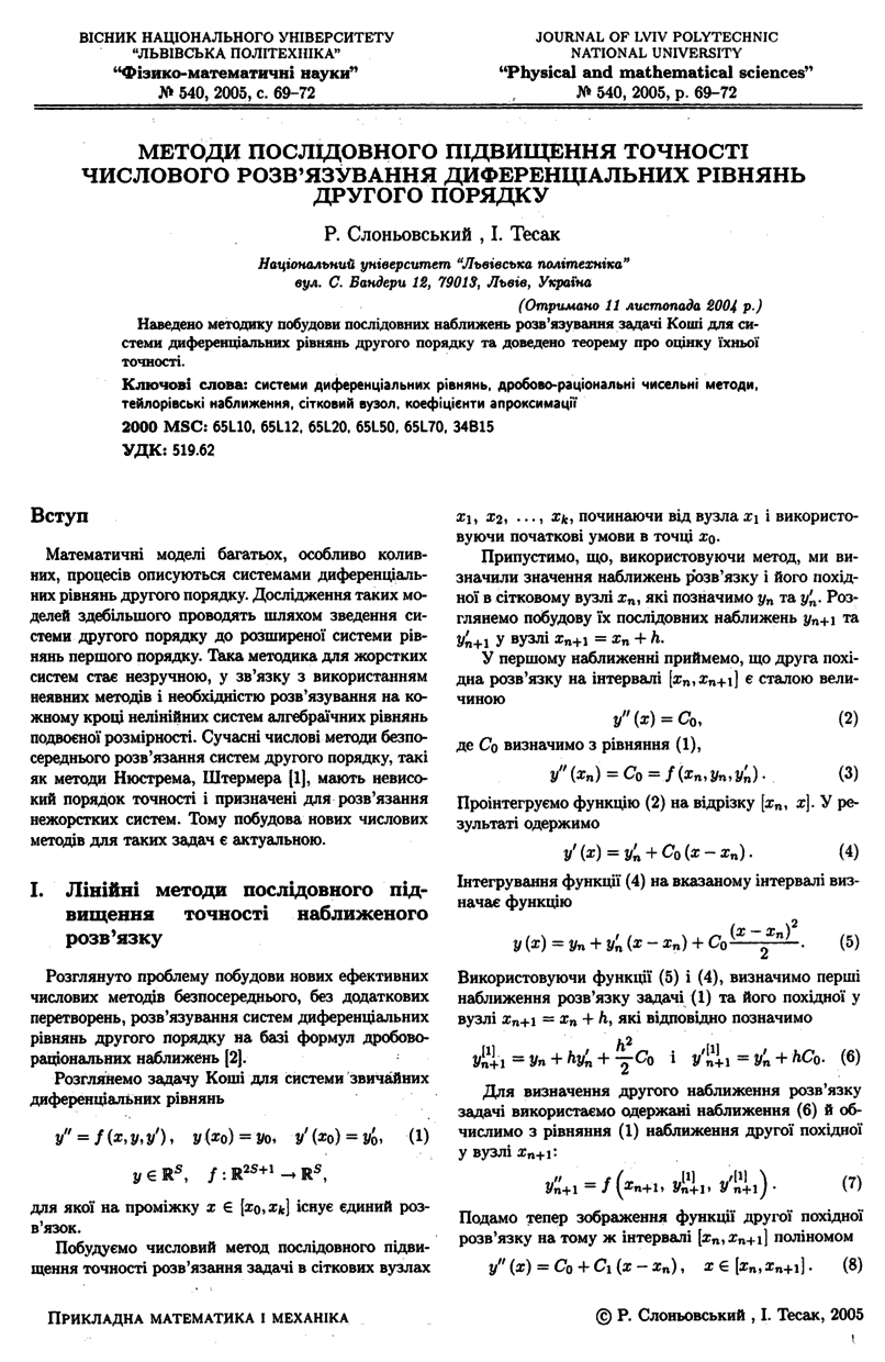Методи послідовного підвищення точності числового розв’язування диференціальних рівнянь другого порядку