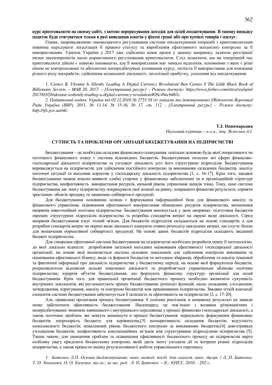 | dc.relation.referencesen | 5. Shava O. Biudzhetne planuvannia yak sposib upravlinnia pidpryiemstvom, O. Shava, zhurnal "Dovidnyk ekonomista", 2007, Issue No 3 p. 22. | |