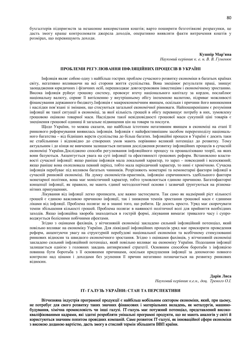 Лиса Д. ІТ- галузь України: стан та перспективи / Дарія Лиса, О. І. Тревого // 77-ма Студентська науково-технічна конференція. Секція "Публічне управління та адміністрування" : збірник тез доповідей, 7 листопада 2019 року, Львів. — Львів : Видавництво Львівської політехніки, 2019. — С. 80–81. — (Економічна теорія та історія розвитку економіки).