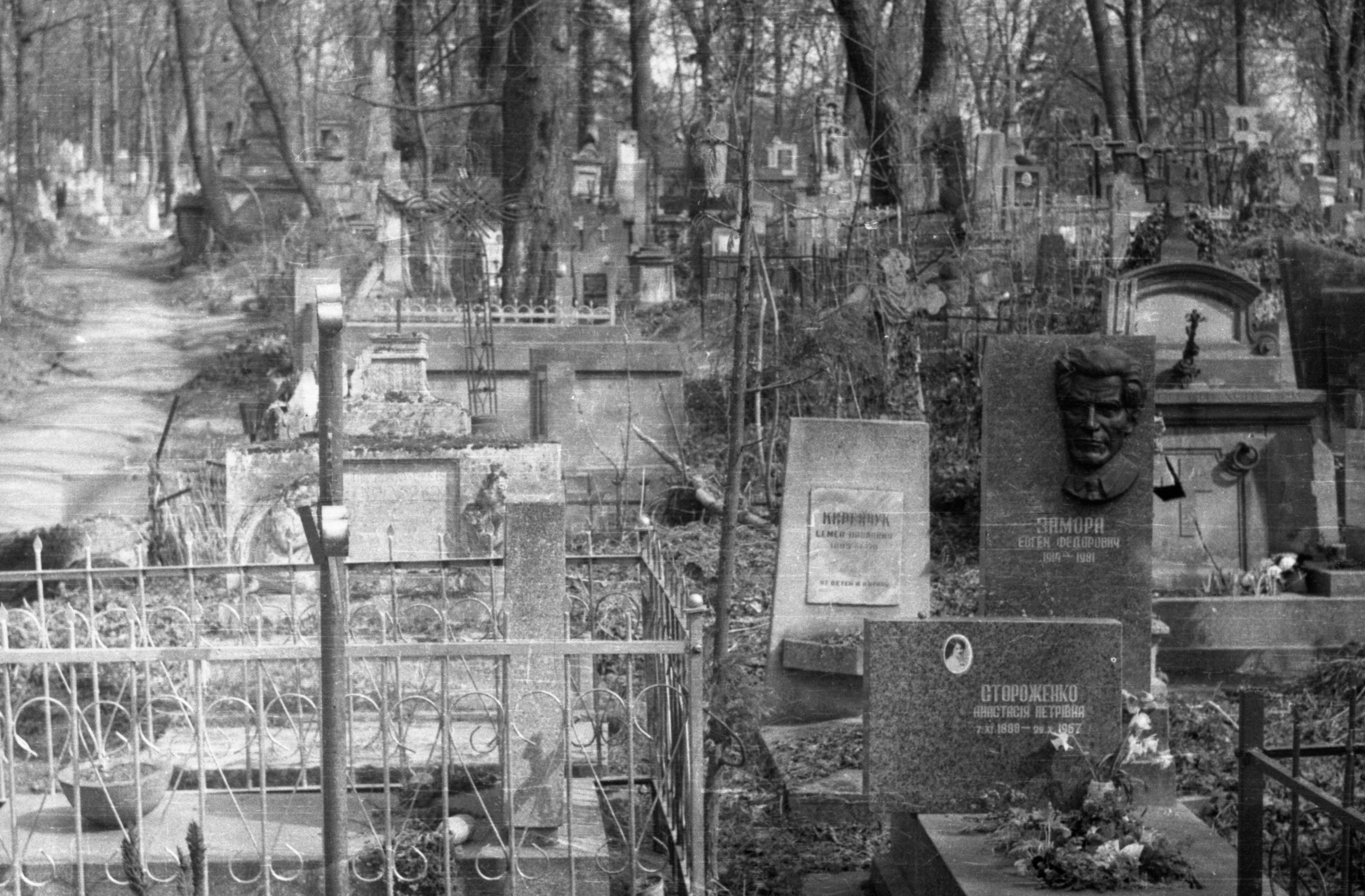 | dc.description.abstract | Фрагмент поля №15. На світлині — велика група надгробків різних періодів, серед яких — поховання Замори Євгена Федоровича і Стороженко Анастасії Петрівни. Замора Євген Федорович (29.10.1914-21.03.1981) — інженер, науковець в галузі радіотехніки, професор Львівського політехнічного інституту, альпініст. Надгробок — стела з барельєфним портретом покійного і інскрипцією про нього. Стороженко Анастасії Петрівни (1888-1967). Надгробок — стела з фотографією покійної і інскрипцією про неї. | |