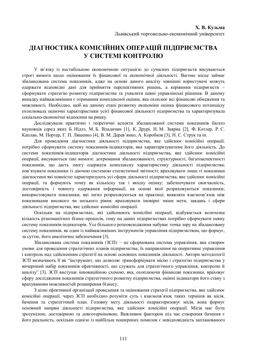 | dc.relation.references | 1. Владичин М. Б., Струк Н. С. Особливості застосування збалансованої системи показників у стратегічному управлінському обліку зовнішньоекономічної діяльності торговельних підприємств України. Проблеми економіки. 2015. № 4. С. 202−209. | |