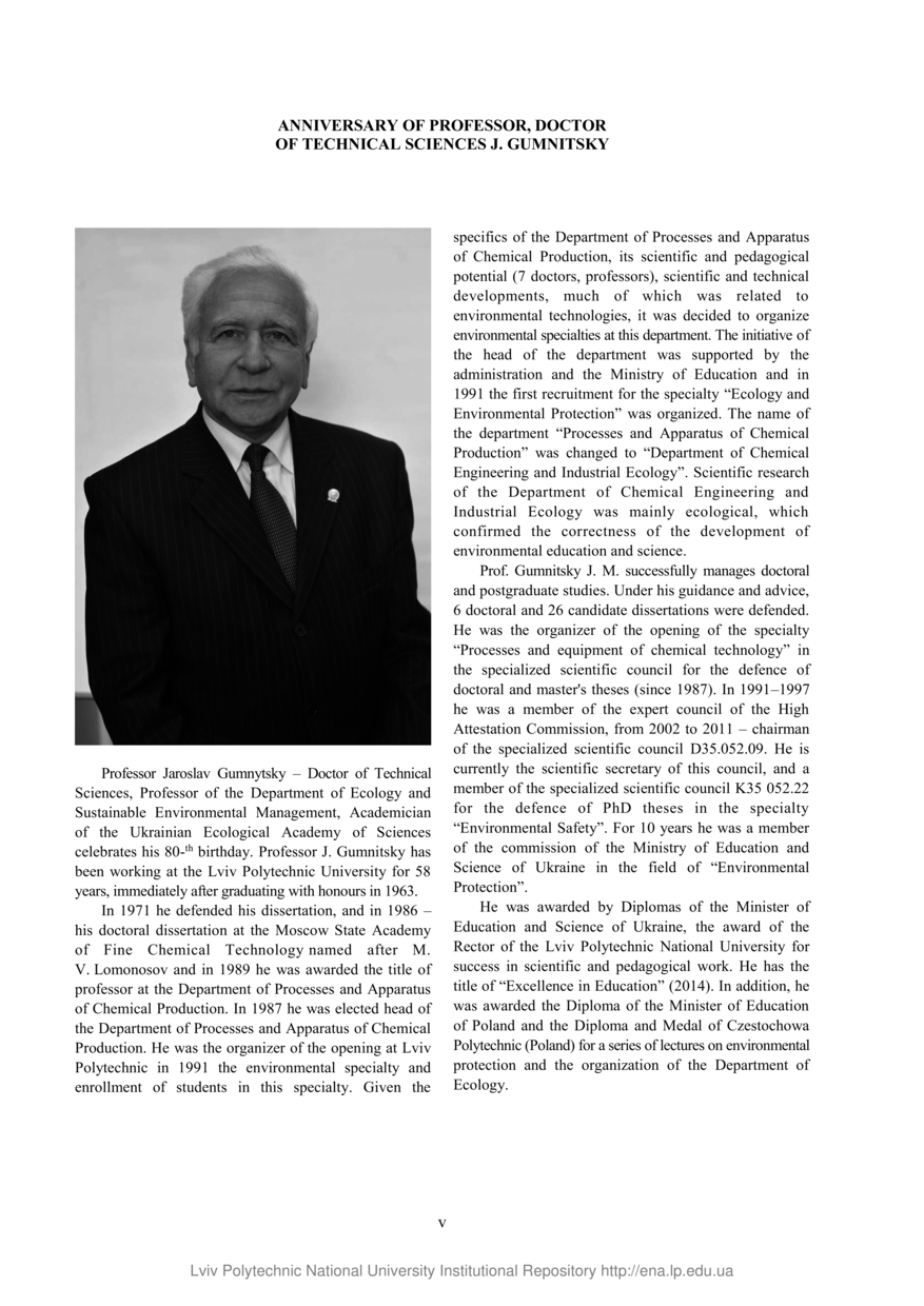Anniversary of professor, doctor of technical sciences J. Gumnitsky