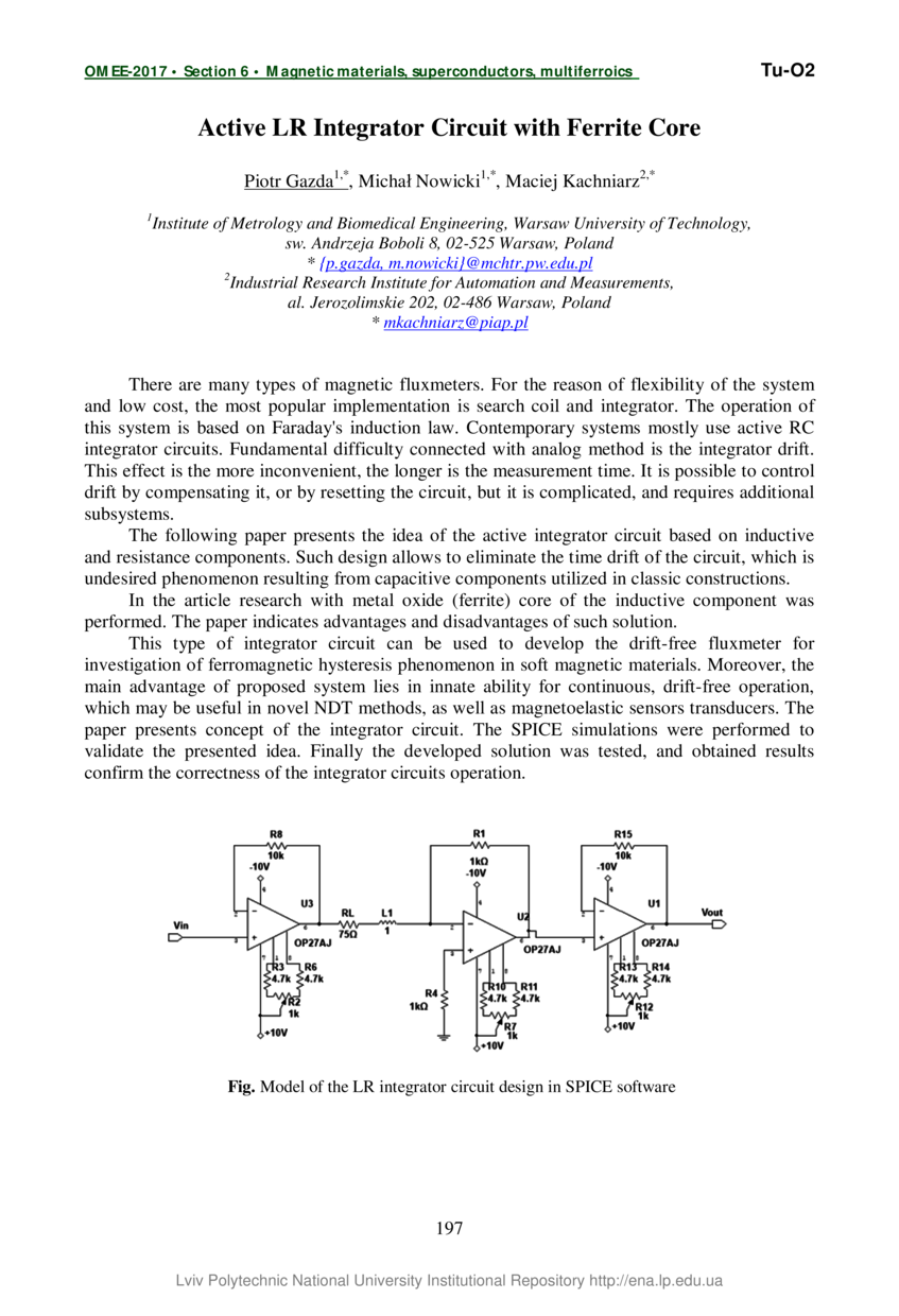 Gazda P. Active LR Integrator Circuit with Ferrite Core / Piotr Gazda, Michał Nowicki, Maciej Kachniarz // Oxide Materials