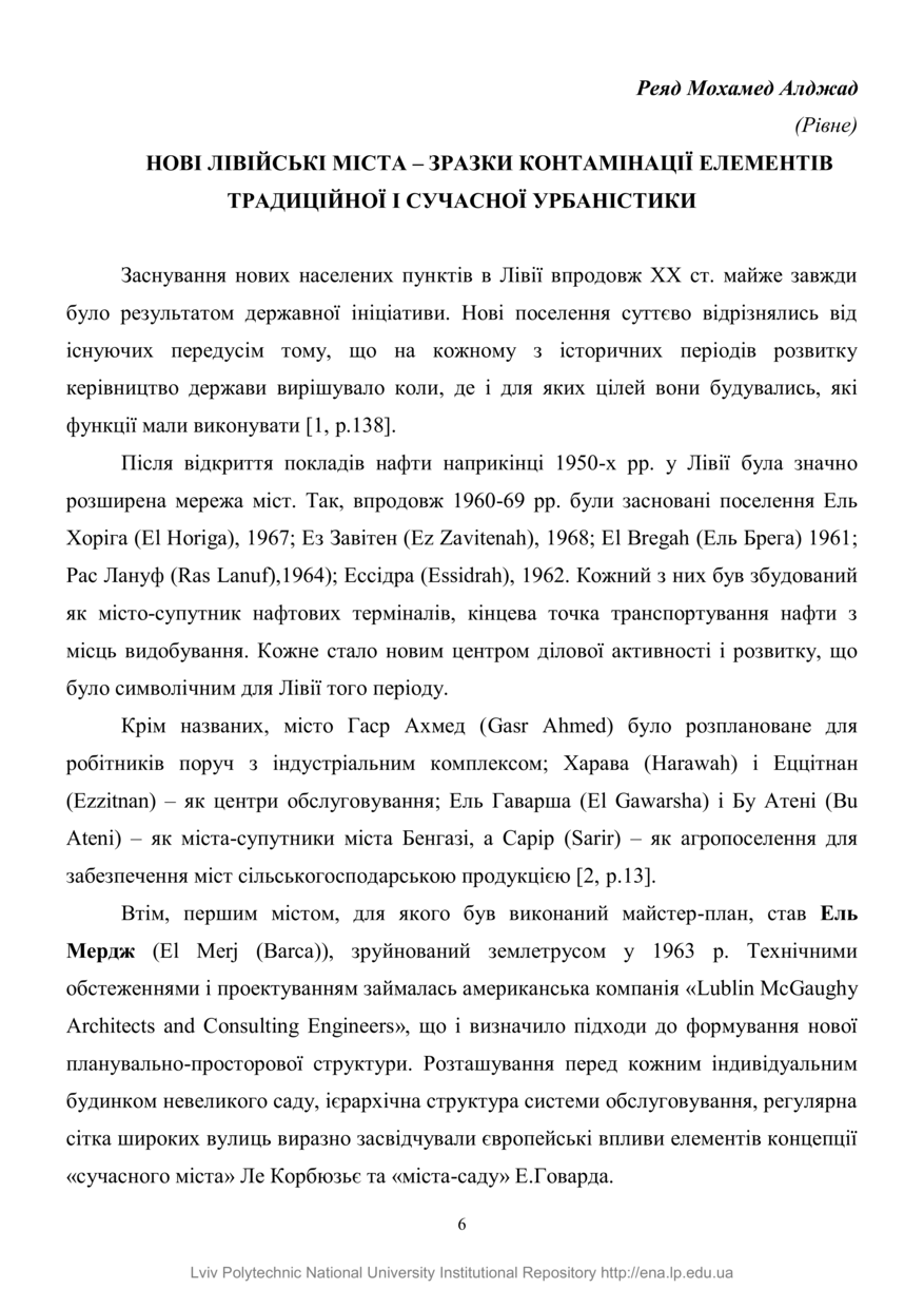 | dc.relation.referencesen | 1. Keiseri S.K. Planning the New Towns in Libya, S.K.Keiseri, Libyan Studies, Vol.14, 1983, P.9-15. | |