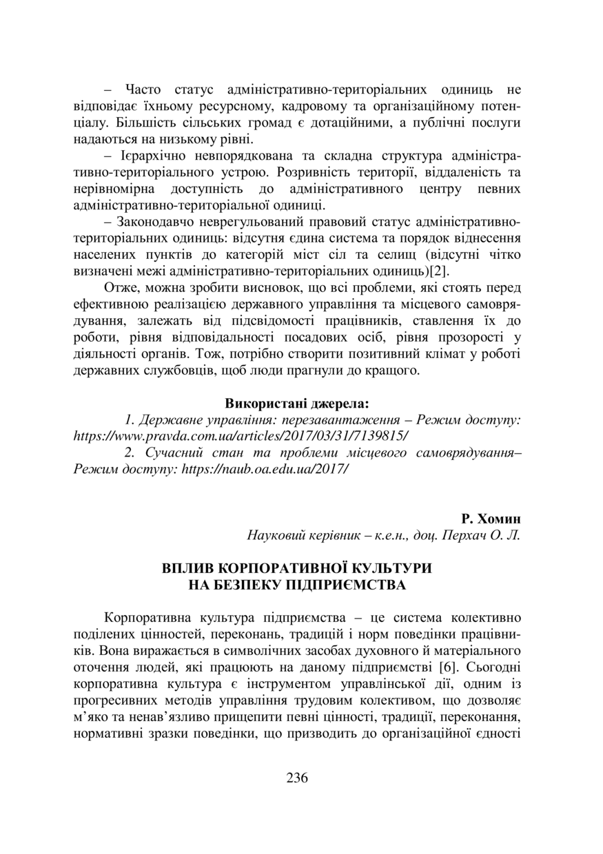 | dc.relation.references | 4. Васильєв А.Й., Харчевнікова Л.С., Вплив корпоративної культури на безпеку підприємства. | |