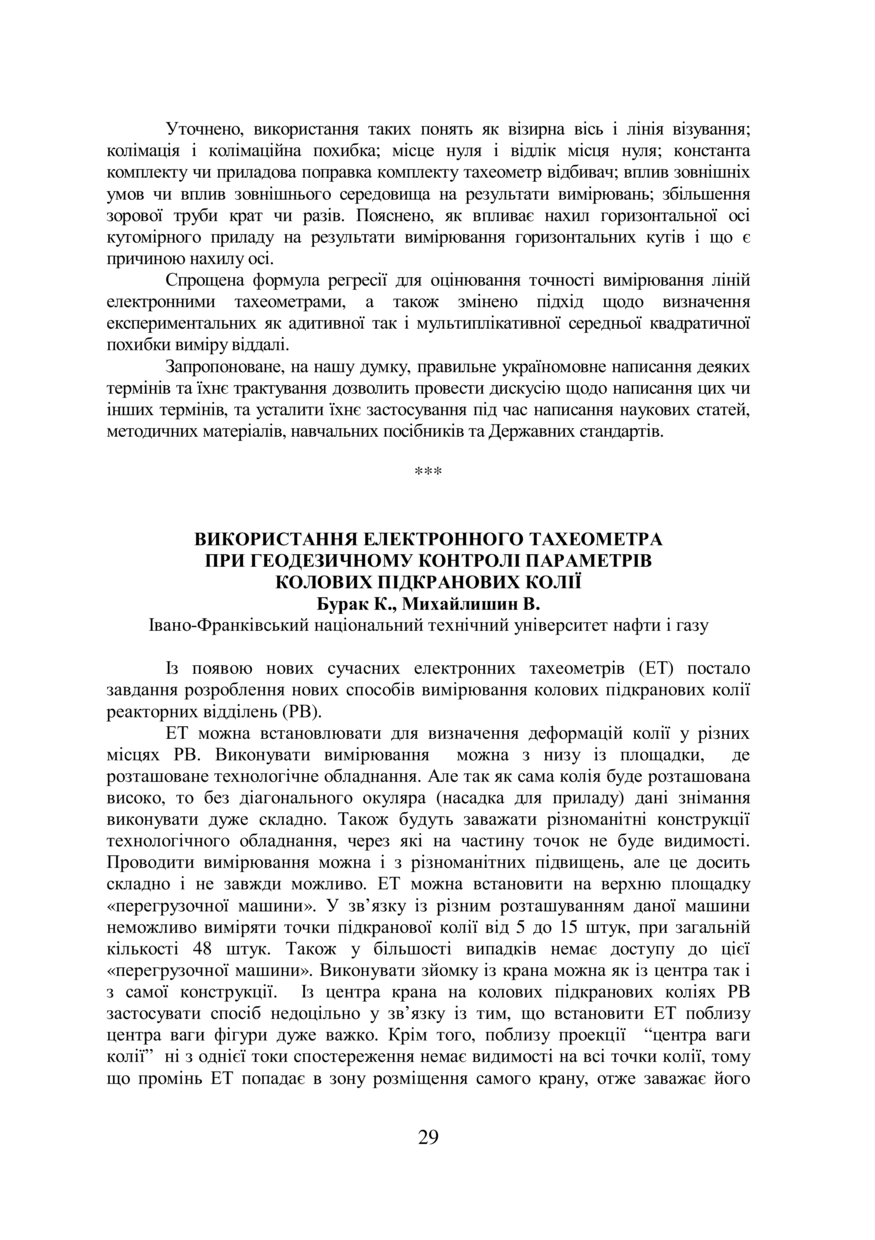Використання електронного тахеометра при геодезичному контролі параметрів колових підкранових колії