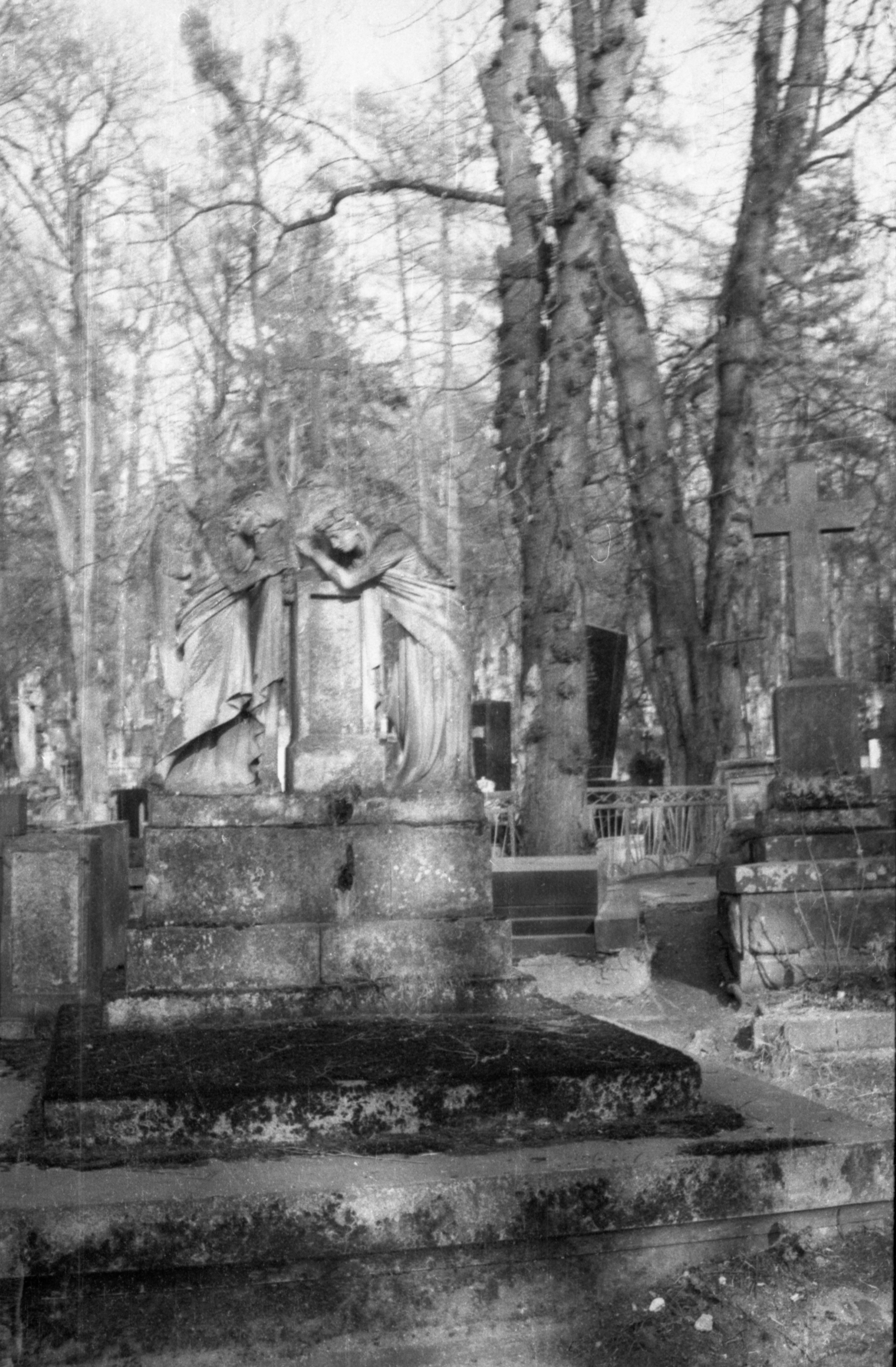 На світлині — високий постамент, увінчаний скульптурами ангела і жінки, які схилились над стелою.