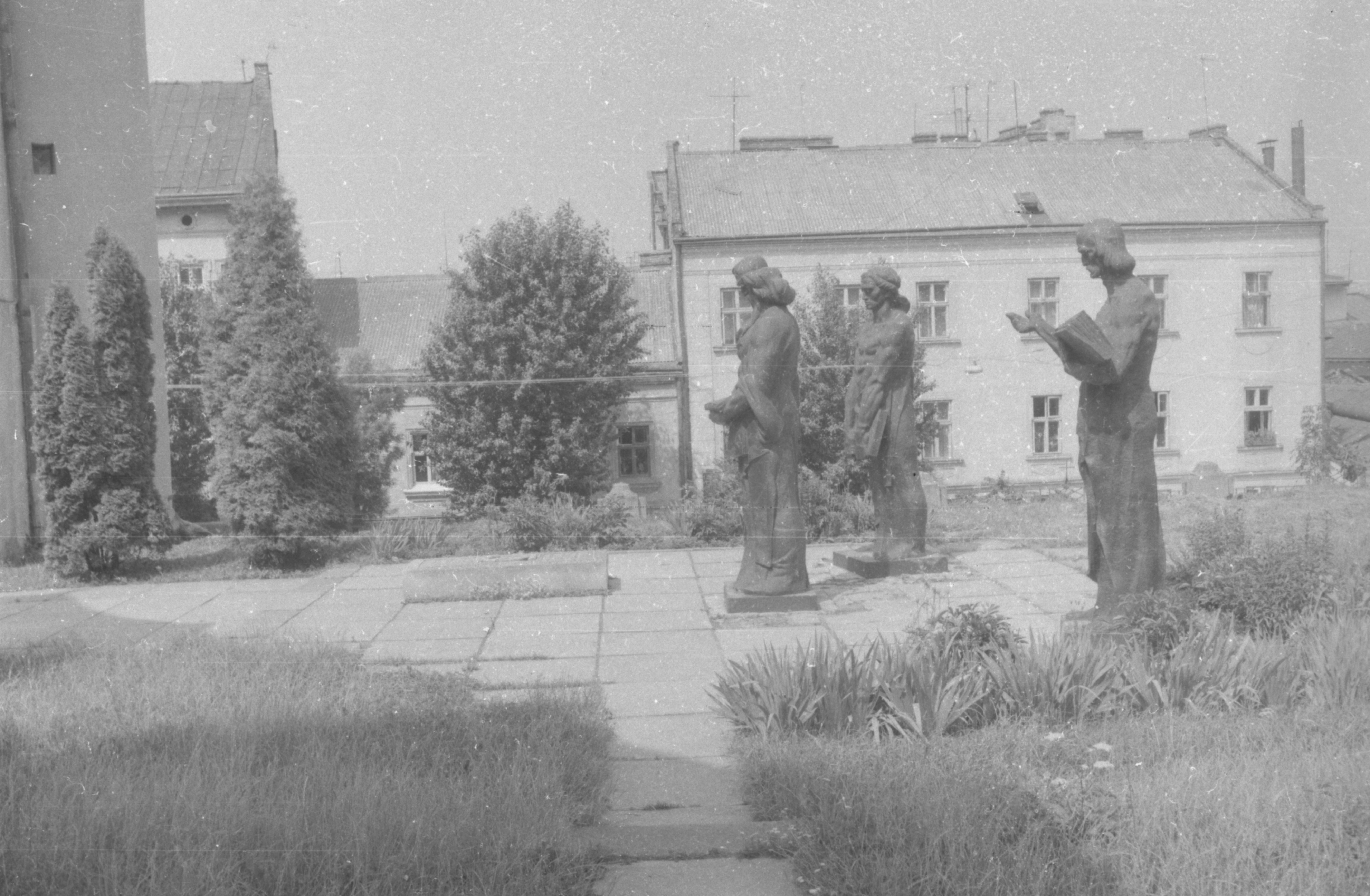Трифігурна скульптурна композиція на честь Івана Федорова на території Онуфріївського монастиря.