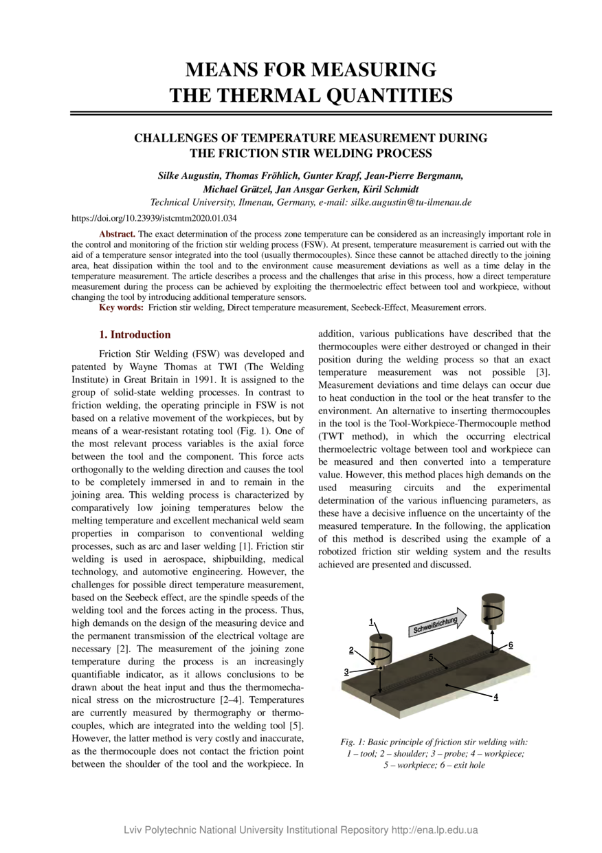 | dc.identifier.citation | Challenges of temperature measurement during the friction stir welding process / Silke Augustin, Thomas Fröhlich, Gunter Krapf, Jean-Pierre Bergmann, Michael Grätzel, Jan Ansgar Gerken, Kiril Schmidt // Measuring equipment and metrology. — Lviv : Lviv Politechnic Publishing House, 2020. — Vol 81. — No 1. — P. 34–38. | |