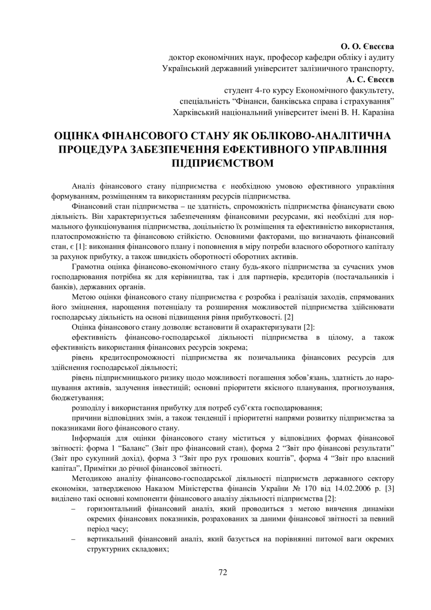 Оцінка фінансового стану як обліково-аналітична процедура забезпечення ефективного управління підприємством