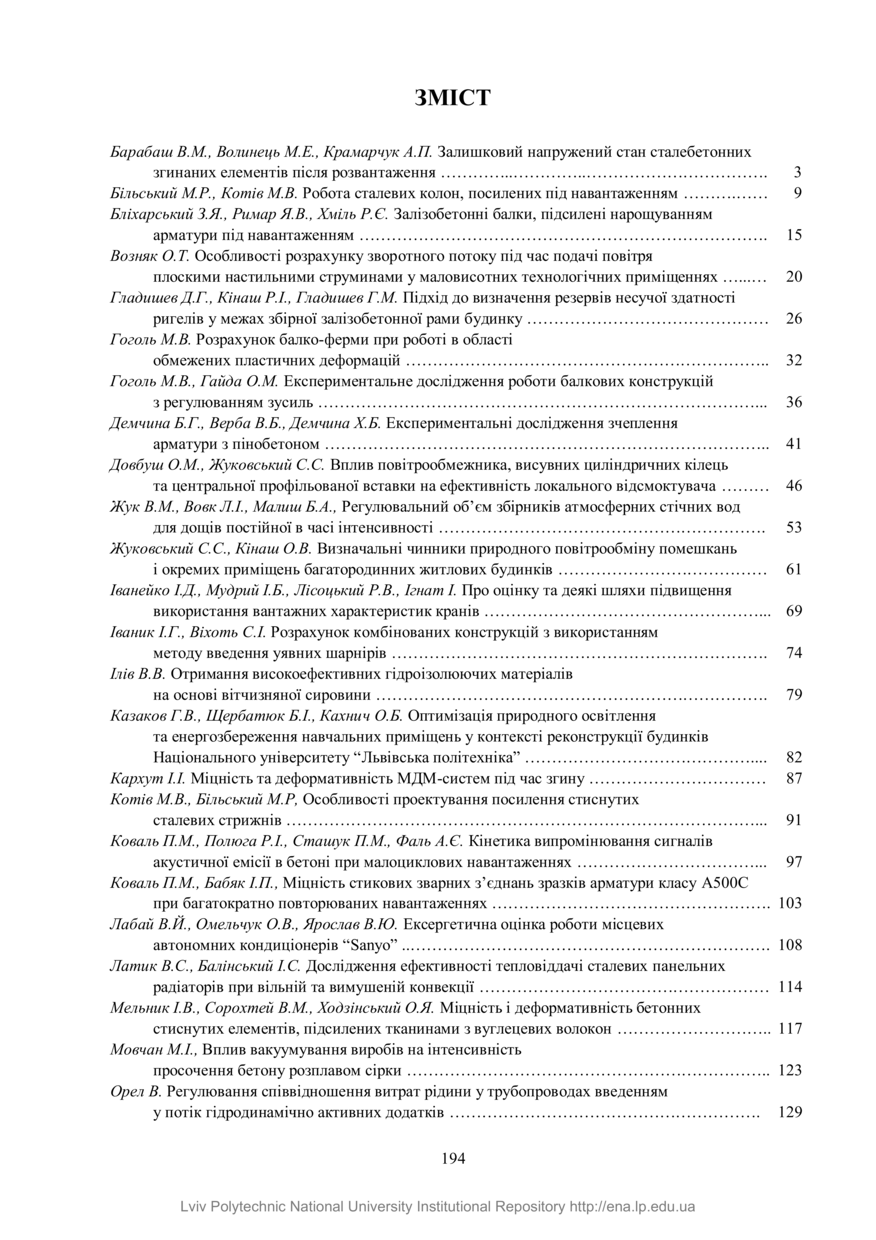 Зміст до Вісника “Теорія і практика будівництва”