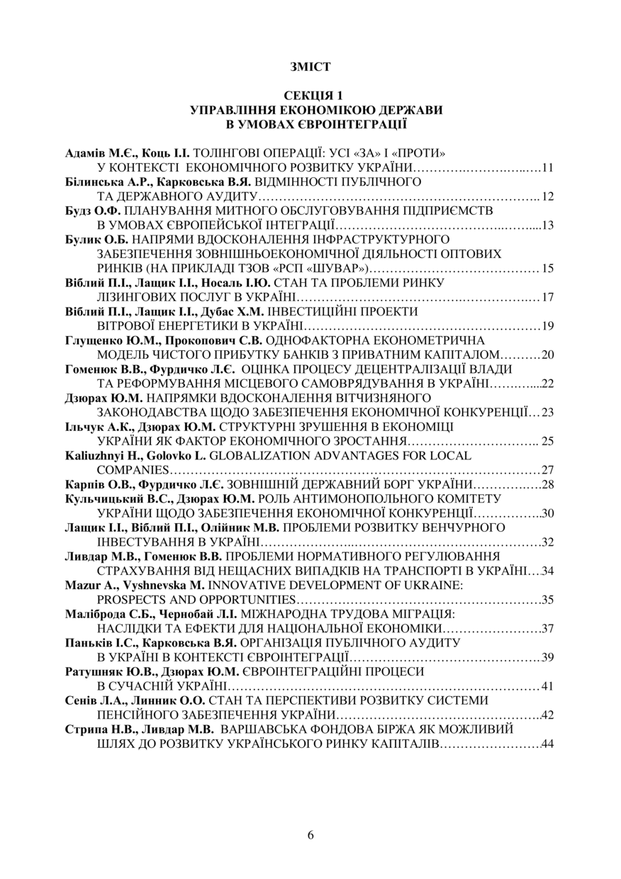 Зміст до “Управління економічними процесами на макро- і мікрорівні: проблеми та перспективи вирішення”