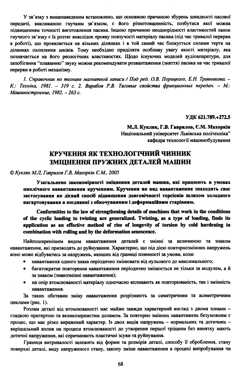| dc.relation.referencesen | 4. Kukliak M.L. Metody pidvyshchennia dovhovichnosti pruzhnykh detalei mashyn, Lviv: Svit, 1997, 206 p. | |