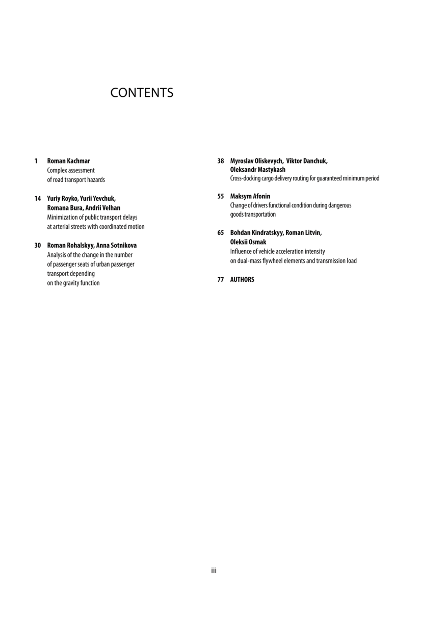 Contents // Transport Technologies. — Lviv : Lviv Politechnic Publishing House, 2022. — Vol 3. — No 1. — P. 79.