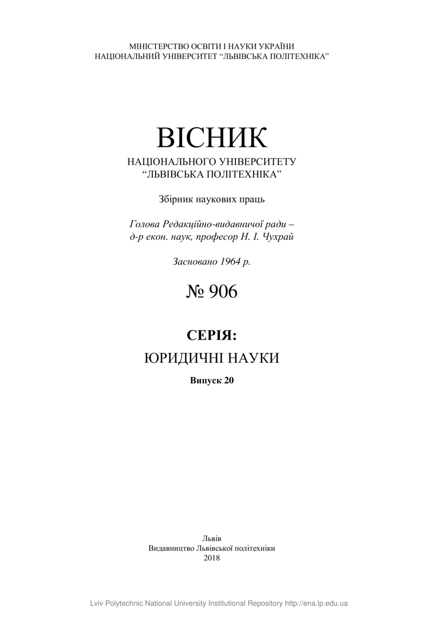 | dc.relation.ispartof | Вісник Національного університету “Львівська політехніка”. Серія: Юридичні науки, 906 (20), 2018 | |