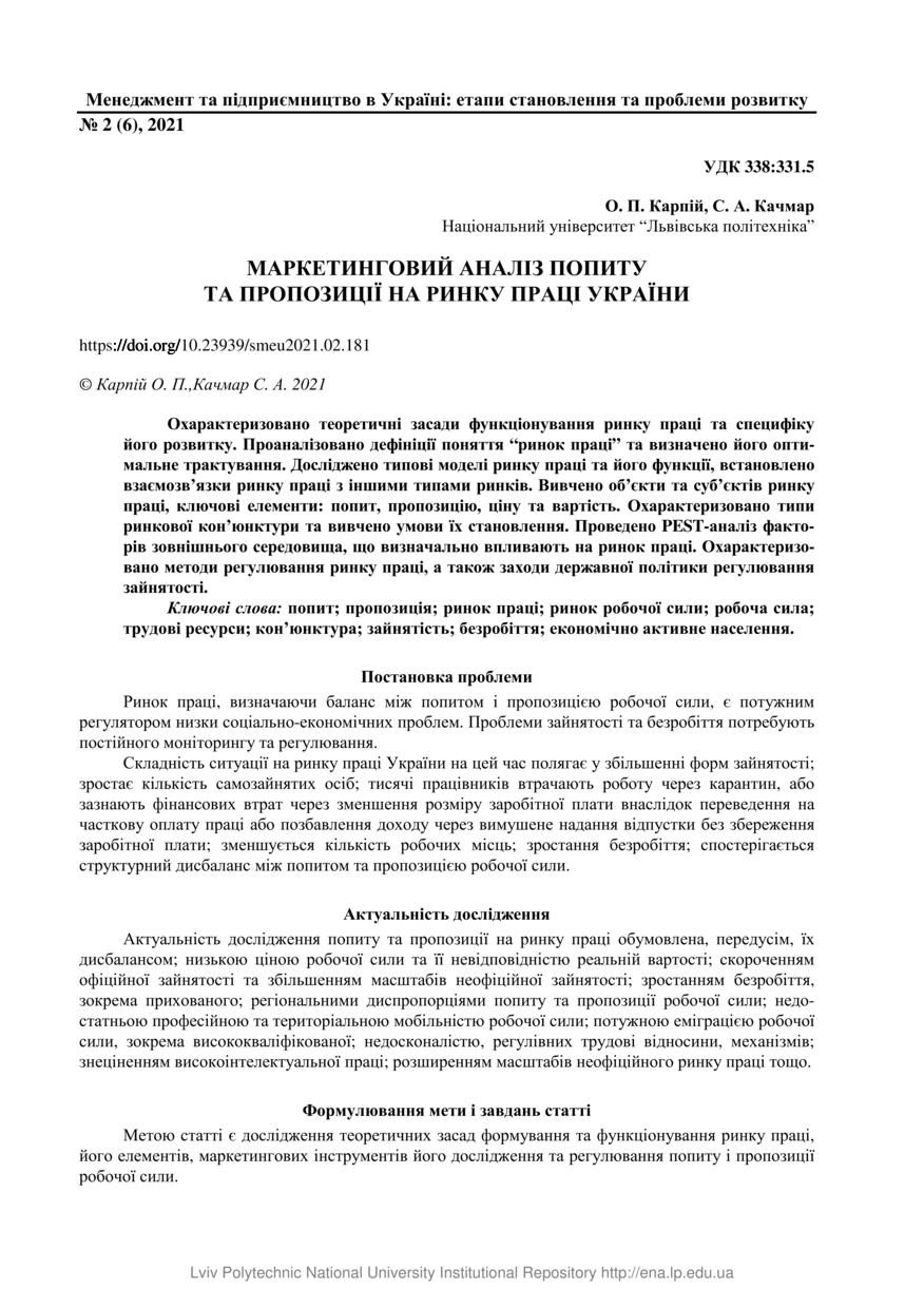 | dc.title.alternative | Marketing analysis of demand and supply in the labor market of Ukraine | |