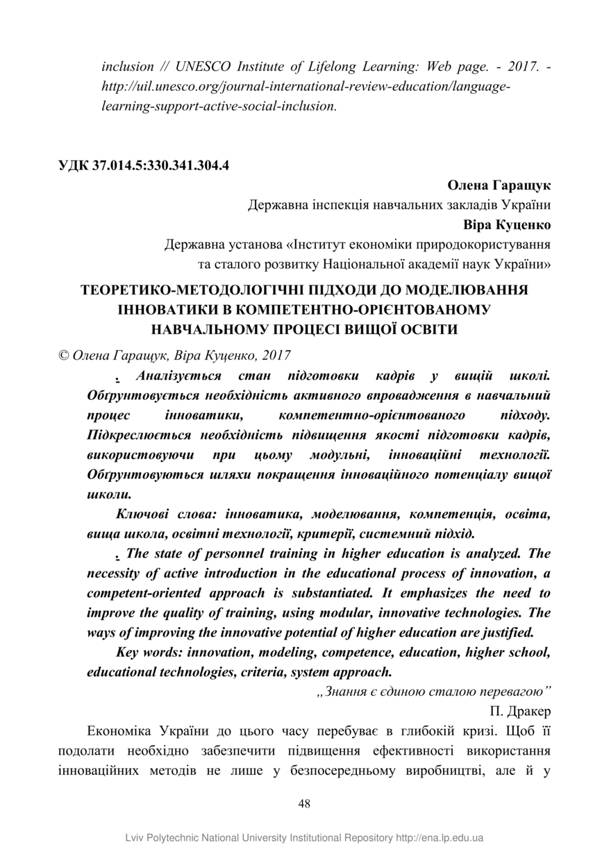 Теоретико-методологічні підходи до моделювання інноватики в компетентно-орієнтованому навчальному процесі вищої освіти