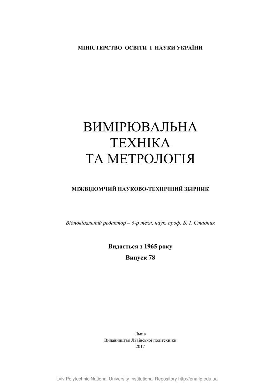 Титульний аркуш до "Вимірювальна техніка та метрологія" // Вимірювальна техніка та метрологія : міжвідомчий науково-технічний збірник. — Львів : Видавництво Львівської політехніки, 2017. — Том 78. — С. 1–2.