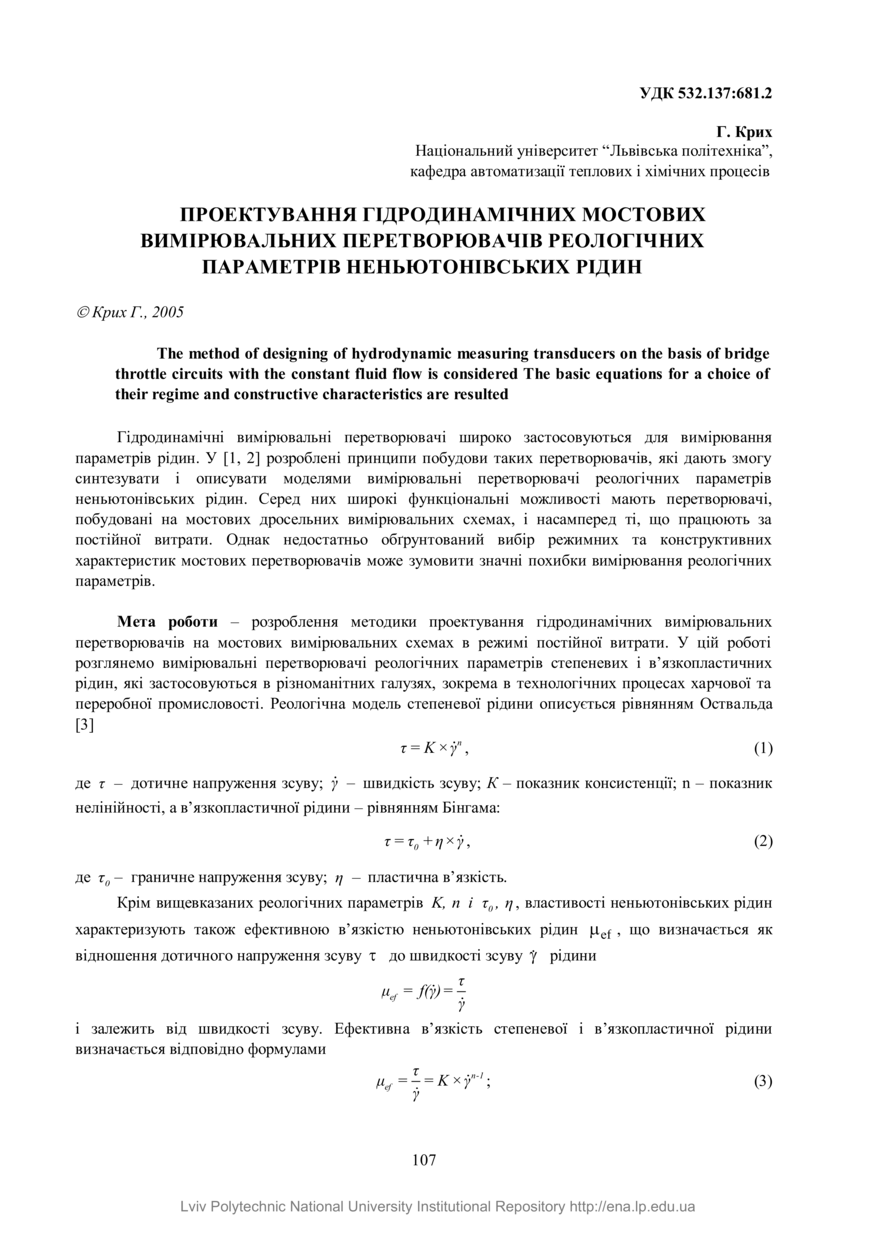 | dc.title | Проектування гідродинамічних мостових вимірювальних перетворювачів реологічних параметрів неньютонівських рідин | |