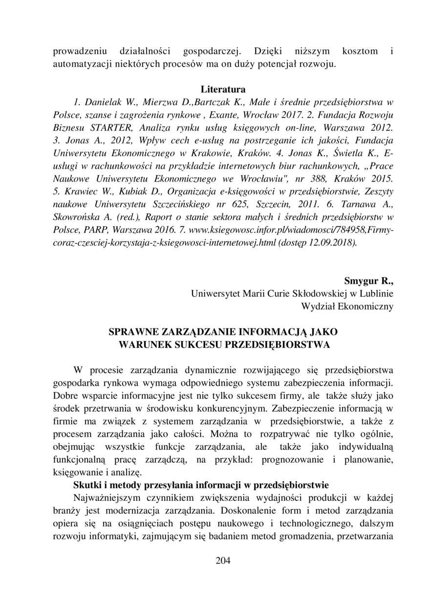Sprawne zarządzanie informacją jako warunek sukcesu przedsiębiorstwa