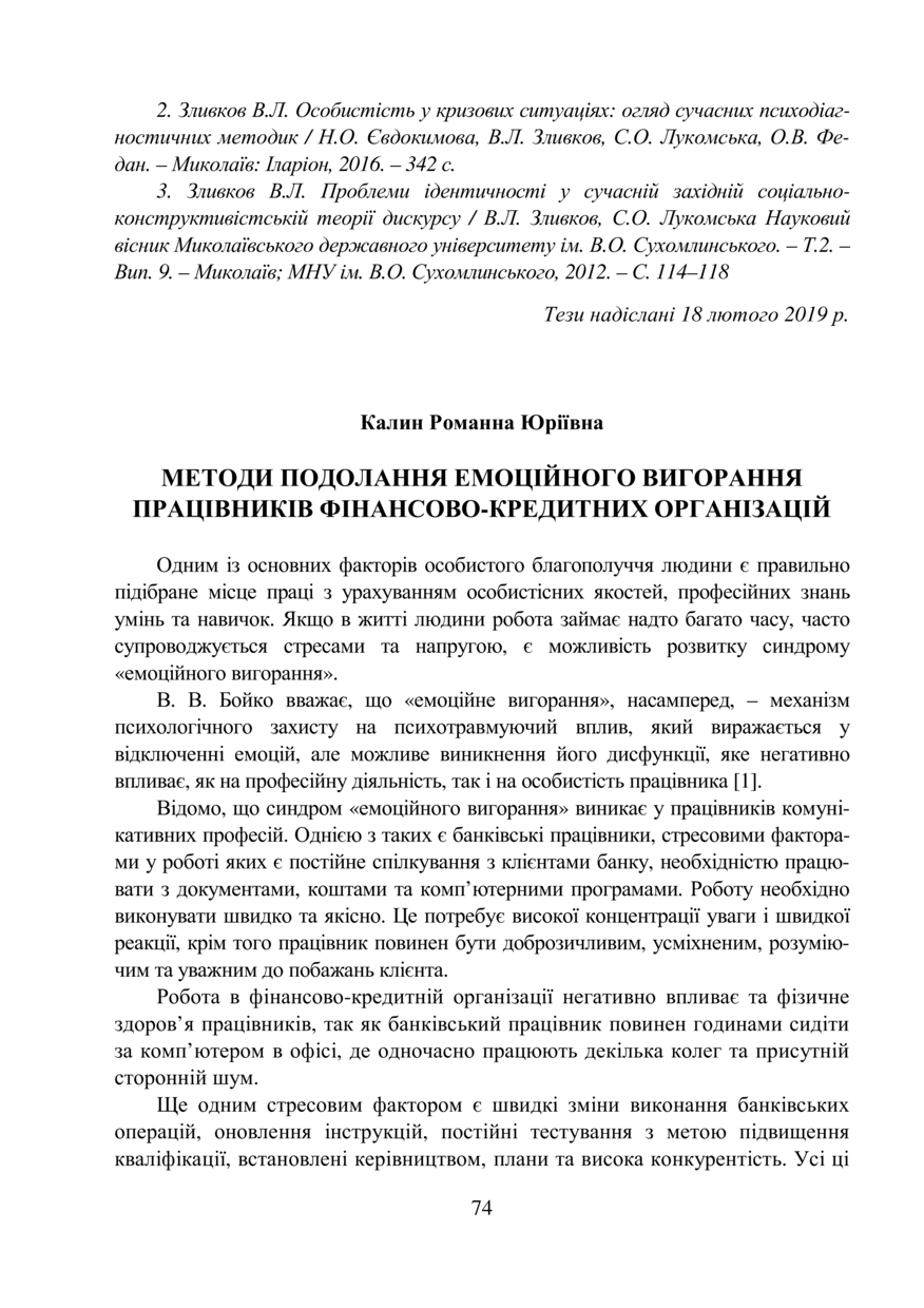 Методи подолання емоційного вигорання працівників фінансово-кредитних організацій